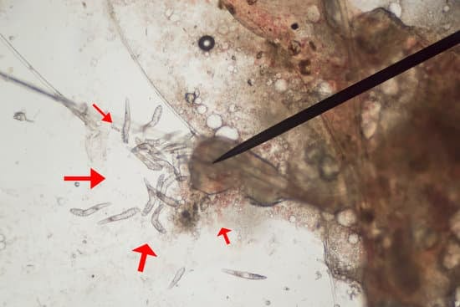 その体長は0.2mm〜0.4mm程度ととても小さく、肉眼で見ることはできません。