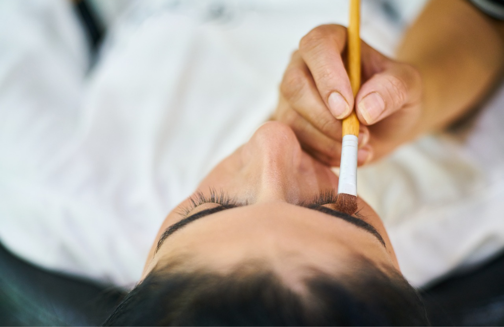 アイブロウパウダーやアイブロウペンシルを使用する前にこの一手間を加えることで、色むらのない眉を作る準備ができます。