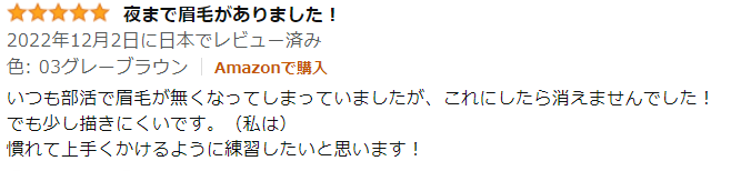 そのため、長期間ではなく1日だけ落ちない眉をキープしたい!という黒髪の人におすすめです。